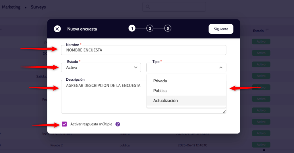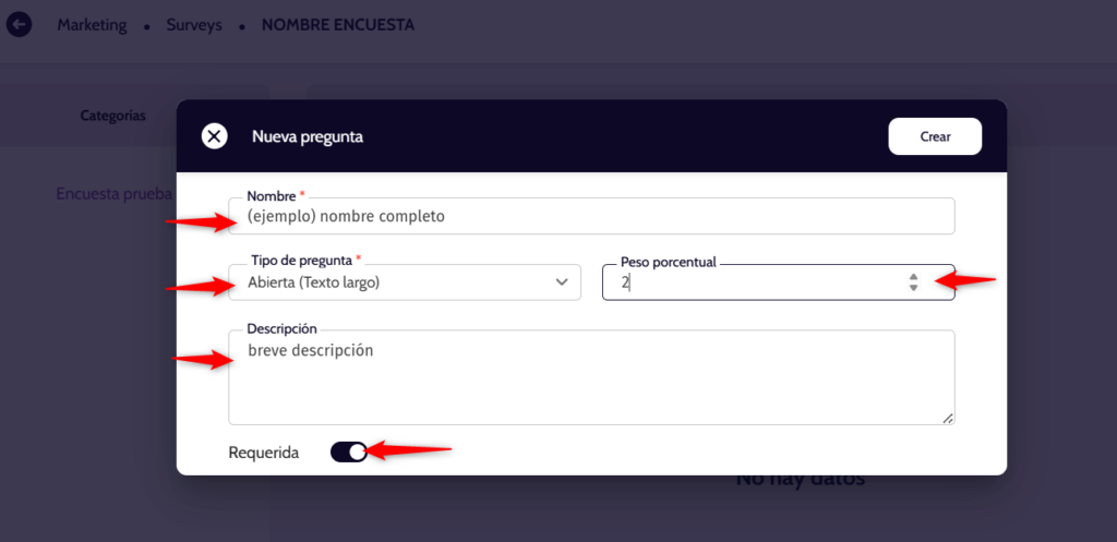 5 – Ingresar el nombre de la encuesta.