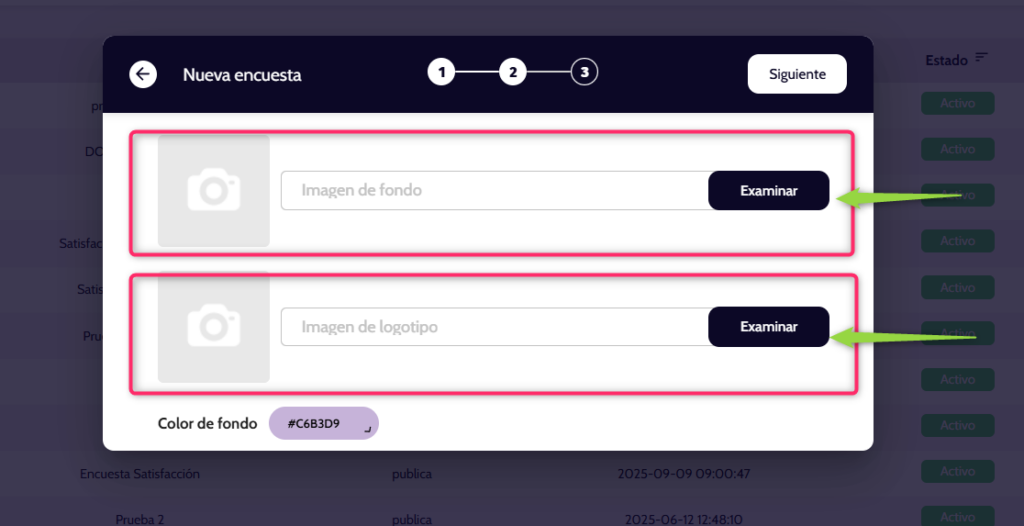 Configuración general de la encuesta (paso 1)