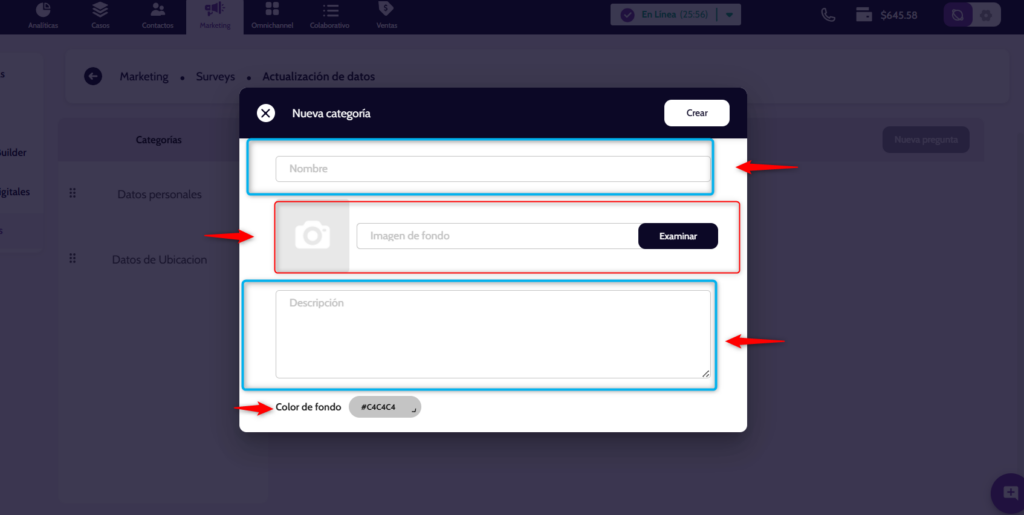 En el campo Nombre, escribir el nombre que identificará la subcategoría de la encuesta.